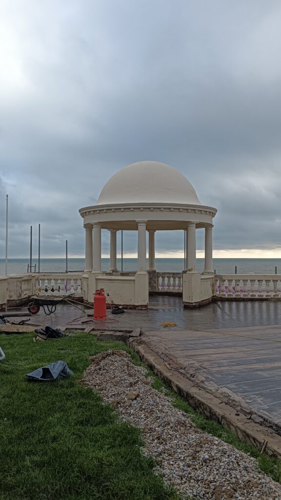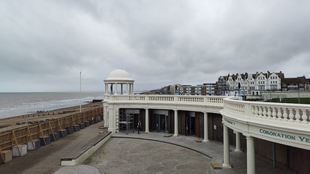The Colonnade is a Grade II listed building on Bexhill’s sea front, erected to commemorate the coronation of King George V. Rother District Council (RDC) will be undertaking a series of repairs and refurbishment works to the building due to issues with water ingress. This project commenced in October 2025 and is scheduled to be completed by Spring 2026.