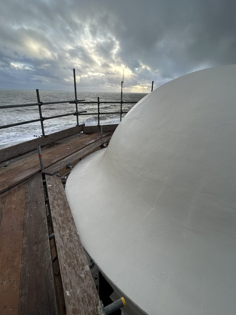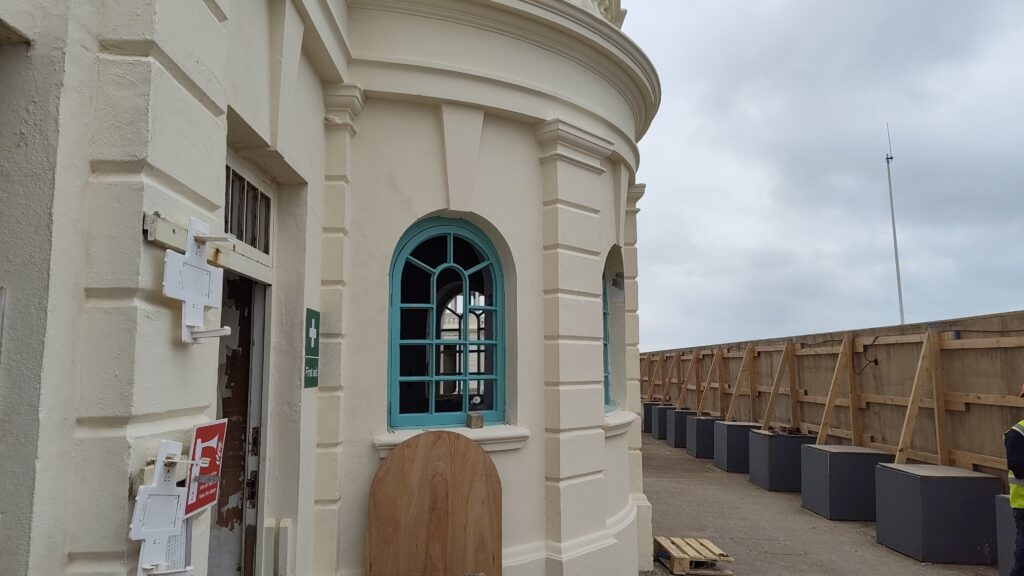 - Roman Cement has been used which is a fast drying and durable. This is good for both the harsh environment and the heritage asset. It is used historically to create features such as the cornices and overhangs on the Colonnade structure.