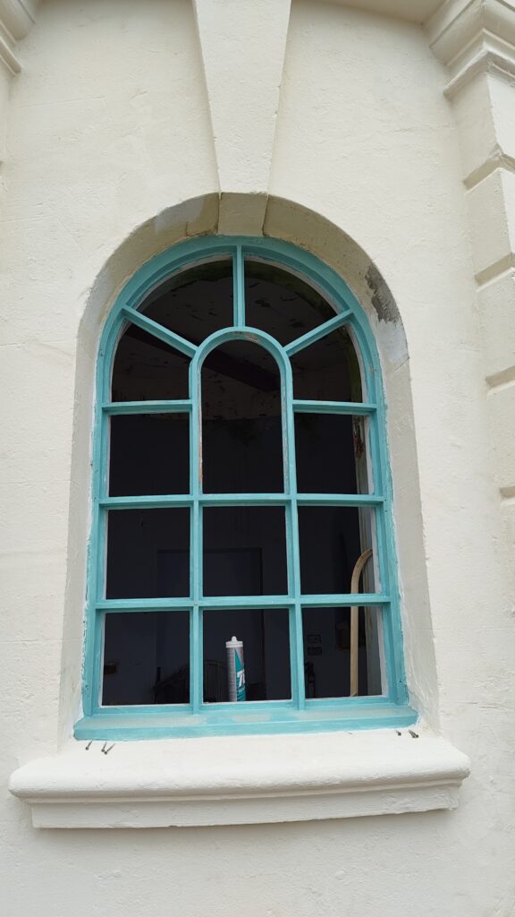 Decorations on the render are almost complete with window refurbishment underway in the good weather. The last stages of the waterproofing are being completed after bad weather delayed progress.